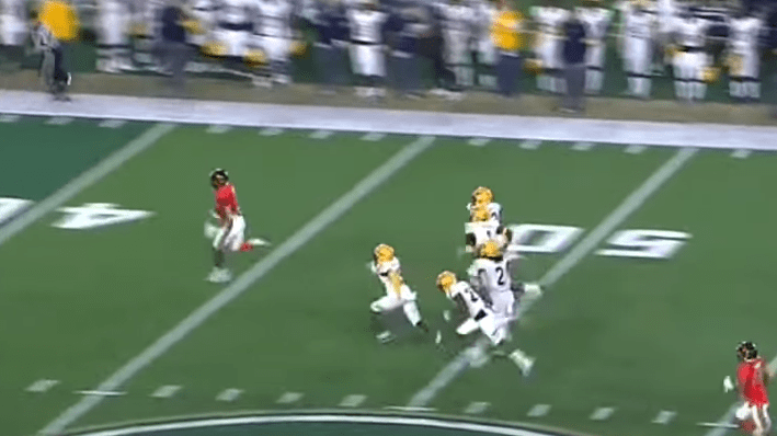 Kind of a Keystone Cop vibe from a terrible Toledo defense.