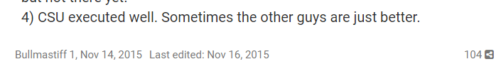 No offense to our Runnin’ Rebel friends, but wins against their crap football teams don’t really move the needle. Rams are 17-6-1 all time against UNLV and the only real stand out game in the series that I can think of is the 2002 game where the Rams were 16th in the country and lost their season finale to a mediocre UNLV squad. Some point to that game as the moment Coach Sonny Lubick lost his mojo.